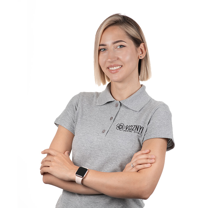 Закінчила Національний медичний університет ім. О. О. Богомольця. Брала участь у численних практичних семінарах, профільних конференціях та курсах. Лікарка спеціалізується на лікуванні пародонтиту та проведенні професійної гігієни зубів.